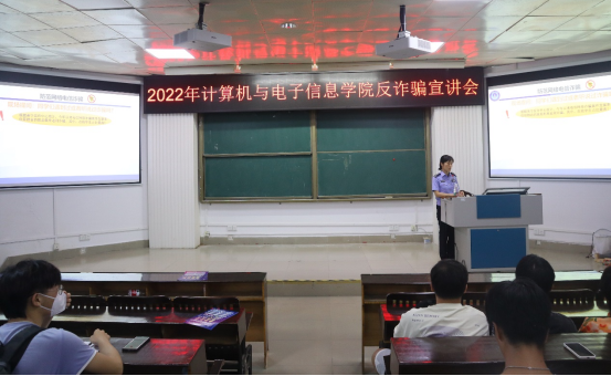 为提高新生安全防范意识,杜绝被诈骗事件的发生,2022年9月23日晚上,在学院214报告厅,情侣自拍内射对白后入组织举行反诈骗宣讲会。学院辅导员庞承业老师、南宁市公安局西乡塘分局反诈中心杨俭警官以及学院2022级全体新生参加会议。