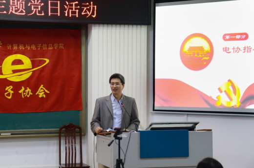 首先,由学院党委副书记邓珍琪老师讲话。邓老师希望主题党日活动以更多更精彩的形式开展,并积极开拓室外活动;希望全体党员发挥先锋模范作用,全心全意为同学们服务,帮助同学们解决实际困难,带动班级、宿舍学习氛围,与同学们和睦相处,严格遵守各项规章制度;希望同学们以端正态度参与活动、认真听讲,富有收获与感悟;希望同学们通过经验分享会确立长远目标,认真规划大学生涯并付诸行动。