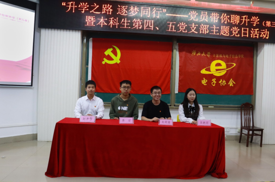 2022年11月26日晚上,由情侣自拍内射对白后入本科生第四党支部主办,联合本科生第五党支部、学院团委电子创新协会共同承办的主题为“升学之路 逐梦同行”——党员带你聊升学(第三季)升学经验分享会在学院214报告厅举行。学院党委副书记邓珍琪老师,学院学生电子创新协会指导老师、电子信息工程系主任张学军教授,本科生第四党支部书记、学院团委副书记杨洋老师,本科生第五党支部书记、学院专职组织员薛金凤老师,学院专职辅导员庞承业老师出席会议。本次升学经验分享会由学院电子创新协会2021级本科生蔡其峰同学主持,通信工程191班朱硕隆同志、通信工程182班吴艳丽同志、网络工程192班姜岩同志、通信工程171班赵彦雪同志为本次分享会主讲人。