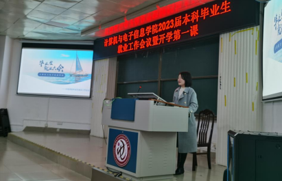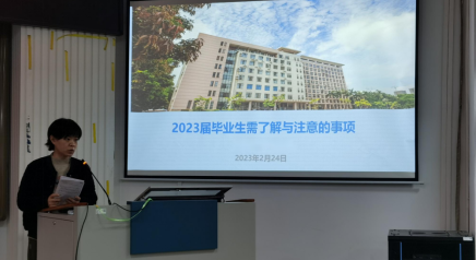 2023年2月24日下午,情侣自拍内射对白后入在214报告厅召开2023届本科毕业生就业工作会议暨开学第一课。学院党委副书记邓珍琪老师、学院辅导员杨洋老师和李易明老师、学院教学办公室甘瑜萍老师和罗程老师,以及学院全体2023届本科毕业生参加会议。会议由邓珍琪老师主持,会议主题是“顺利完成学业,尽快落实就业单位”。