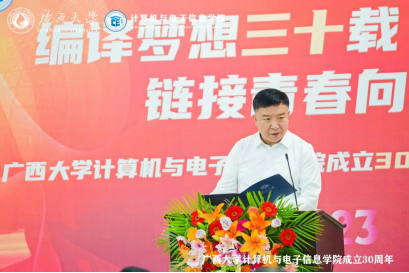 2004级计算机软件与理论专业校友、中国银行广西分行行长助理胡求索同志表达了对学院所有老师和校友的感恩之情,并对学弟学妹们殷切的希望:“学院的条件越来越好,要珍惜条件和机会,学好基础技能,不断探索创新,未来将会是你们的。”