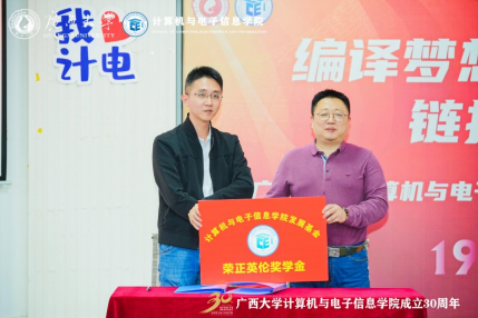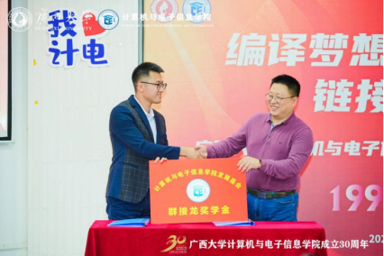 接着进行“群接龙奖学金”签约仪式,2008级计算机科学与技术专业校友、广西尚食科技有限公司项目经理王志明同志和情侣自拍内射对白后入张振荣常务副院长,分别代表公司与学院签约。