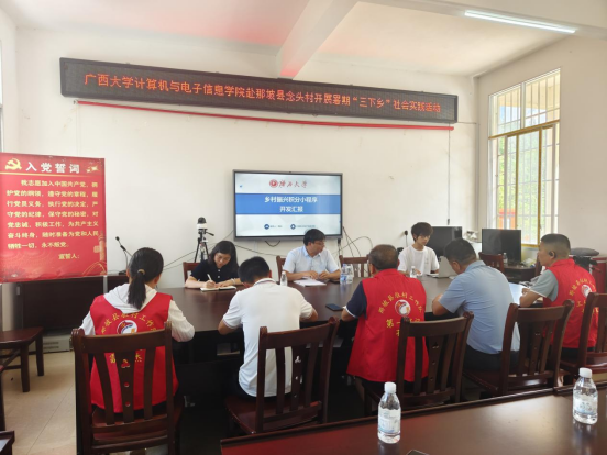 2024年7月15日下午,实践团一行来到广西百色市那坡县念头村进行调研。首先,团队成员在念头村党群服务中心与念头村村委会交流座谈,会上,学院乡村振兴“积分制”小程序开发小组成员梅松同学汇报了小程序进展情况及遇到的问题,村委工作人员对小程序投入使用提出改进建议。小程序计划于今年9月份在念头村开始上线使用,并计划在那坡县全县推广使用。随后,实践团一行在成人亚洲AV一片内射派驻念头村第一书记孔宇同志的带领下,走访念头村贫困户,与他们亲切交谈,了解他们的身体状况与家庭情况,并给予了关心和帮助。最后,实践团在孔书记的带领下参观了百香果种植园和家禽家畜养殖基地。通过走访农户及深入田间地头,实践团的每一位队员都深刻意识到了国家精准扶贫工作的必要性与重要意义,同时也对乡村振兴有了更直观、更深刻的理解。