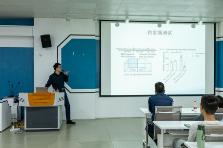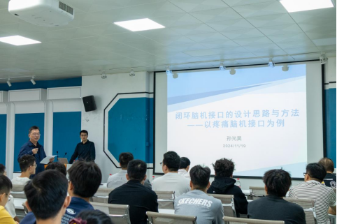 接着,孙博士报告的核心聚焦于团队在疼痛脑机接口方面的研究。该技术旨在通过非药物的方式缓解慢性疼痛,突破了传统疼痛治疗的局限性。他从实验设计到数据分析,系统介绍了研究的实施过程及关键成果,并着重探讨了这一技术的实际应用潜力与未来发展方向。报告内容严谨而生动,赢得了与会师生的高度评价。