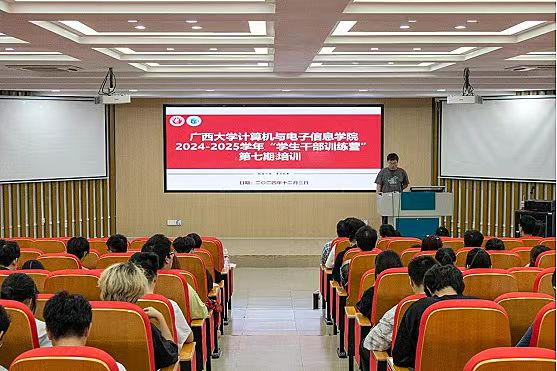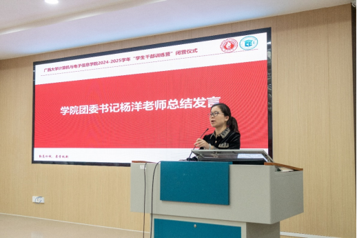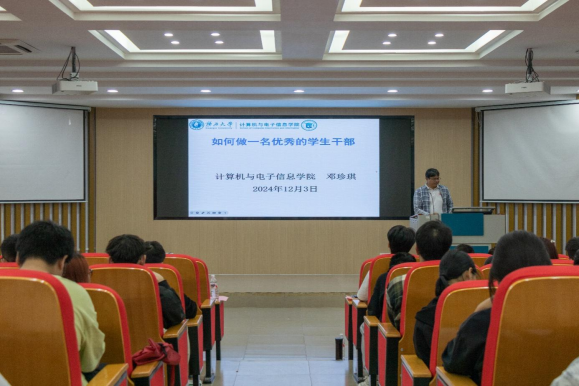 2024年12月3日,情侣自拍内射对白后入2024-2025学年“学生干部训练营”第七期培训暨闭营仪式在学院214报告厅举行,学院党委副书记邓珍琪老师、团委书记杨洋老师、辅导员张星月老师出席,培训活动由学院研究生会主席团成员耿泽康同学主持。