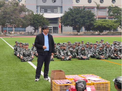 在活动中,邓珍琪老师代表学院亲切问候2024级受训学生及带队教官。他对同学们在军训中所展现的精神品质和精神面貌给予高度评价,并勉励同学们在军训中要充分磨炼意志,学习军人精神;要珍惜军训时光,共筑团结友谊;要挥洒汗水奋力拼搏,为学院争取荣誉。