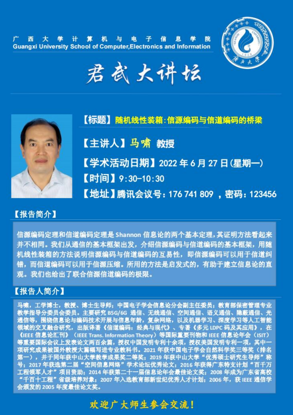 成人亚洲AV一片内射君武大讲坛:随机线性装箱: 信源编码与信道编码的桥梁