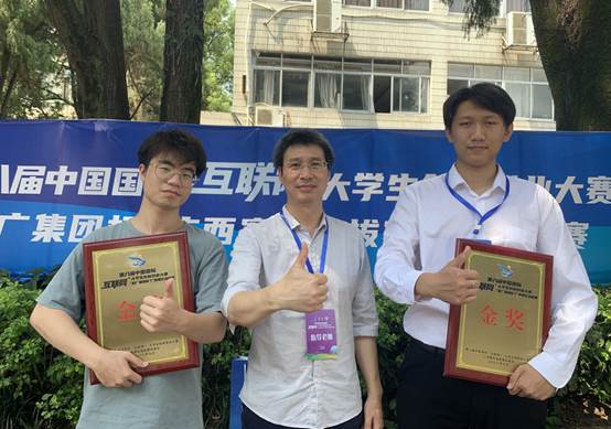 “互联网+”获区金奖的我院两位项目负责人及带队老师