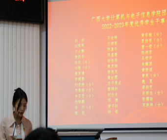 会议第六项议程:张星月老师宣读学院优秀学生干事名单并颁发荣誉证书
