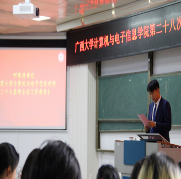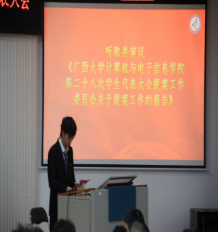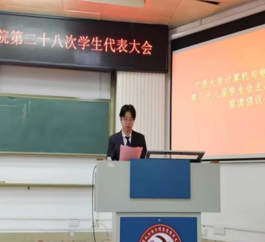 会议第四项议程:学院第二十八届学生会主席团成员夏宏毅同学报告工作设想。他强调,学院学生会切实为同学们服务,上一届学院学生会为学院师生做了大量的工作并取得不错的成绩;接下来,我们将坚定理想信念,团结协作,努力奋斗,深化改革,加强与各方联系,努力为学院高质量发展做出更大贡献。