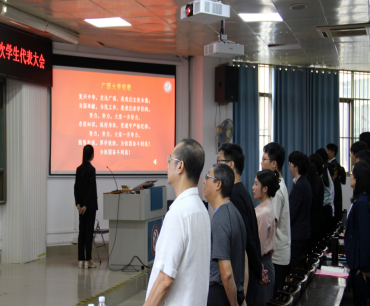 会议在嘹亮的校歌声中圆满落下帷幕。会后,上一届学院学生会和新一届学院学生会全体委员与参会领导、老师集体合影。