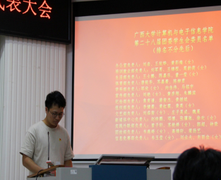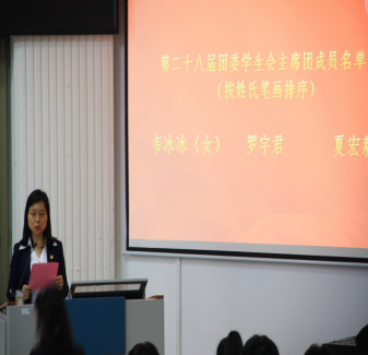 会议第三项议程:杨洋老师宣读学院第二十八届学生会主席团成员名单。