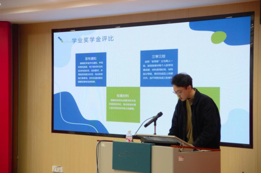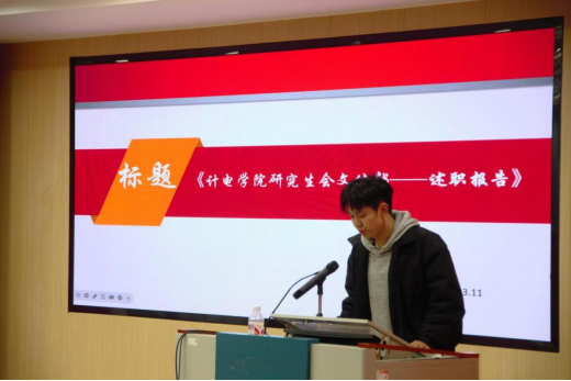 研究生会执行主席史承悦同学对上学期研究生会的工作开展情况进行总结,并对下一阶段研究生会的工作提出具体的设想和要求。