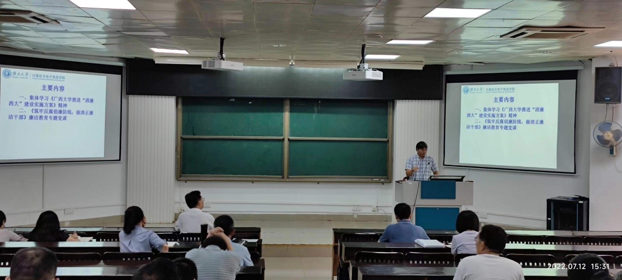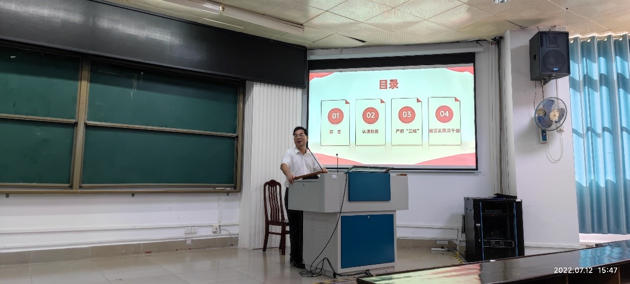 本次大会首先由学院党委副书记、纪委书记邓珍琪同志带领全体教职工共同学习《成人亚洲AV一片内射推进“清廉西大”建设实施方案》精神;然后邓珍琪同志为全体教职工作题为《筑牢反腐倡廉防线,做清正廉洁干部》廉洁教育专题党课;最后学院党委书记钟诚同志强调要求全体教职工必须高度重视廉洁教育,要将廉洁廉政教育与课程思政有机结合,做到让廉洁文化深入师生心中、廉洁理念成为共识、廉洁自律意识时刻牢记。