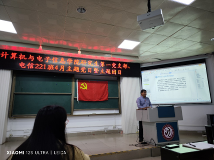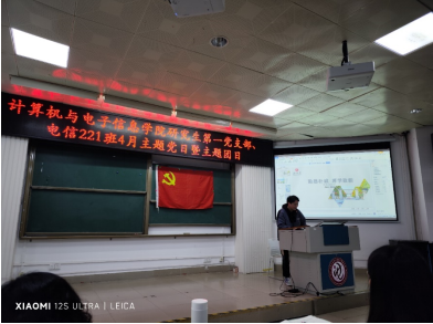2023年4月25日,情侣自拍内射对白后入研究生第一党支部、电信类221班在学院214报告厅,共同组织开展2023年4月份主题党日和主题团日活动。本次活动由党支部书记邓珍琪同志主持,研究生第一党支部全体党员和电子信息类221班全体同学参加。